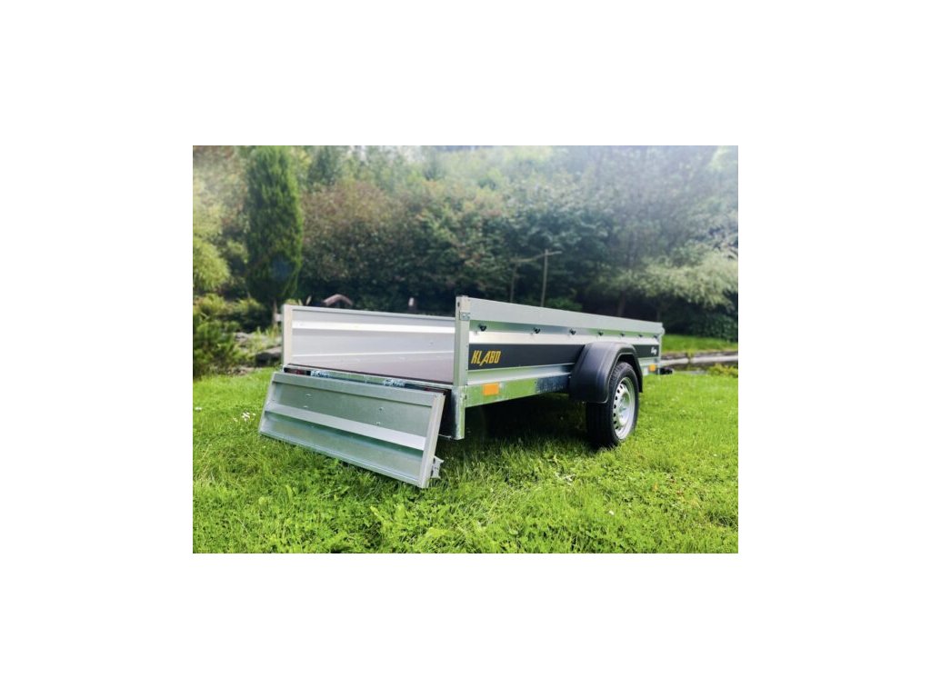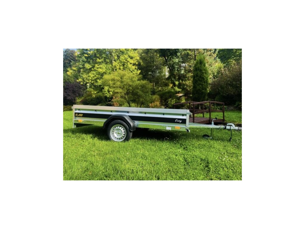 Valníkový jednoosý přívěs KLABO Easy 270 o rozměrech 265 x 130 cm.