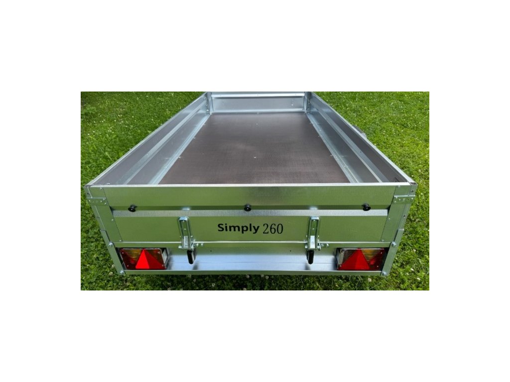 Valníkový jednoosý přívěs KLABO Simply 260 o rozměrech 252 x 130 cm.