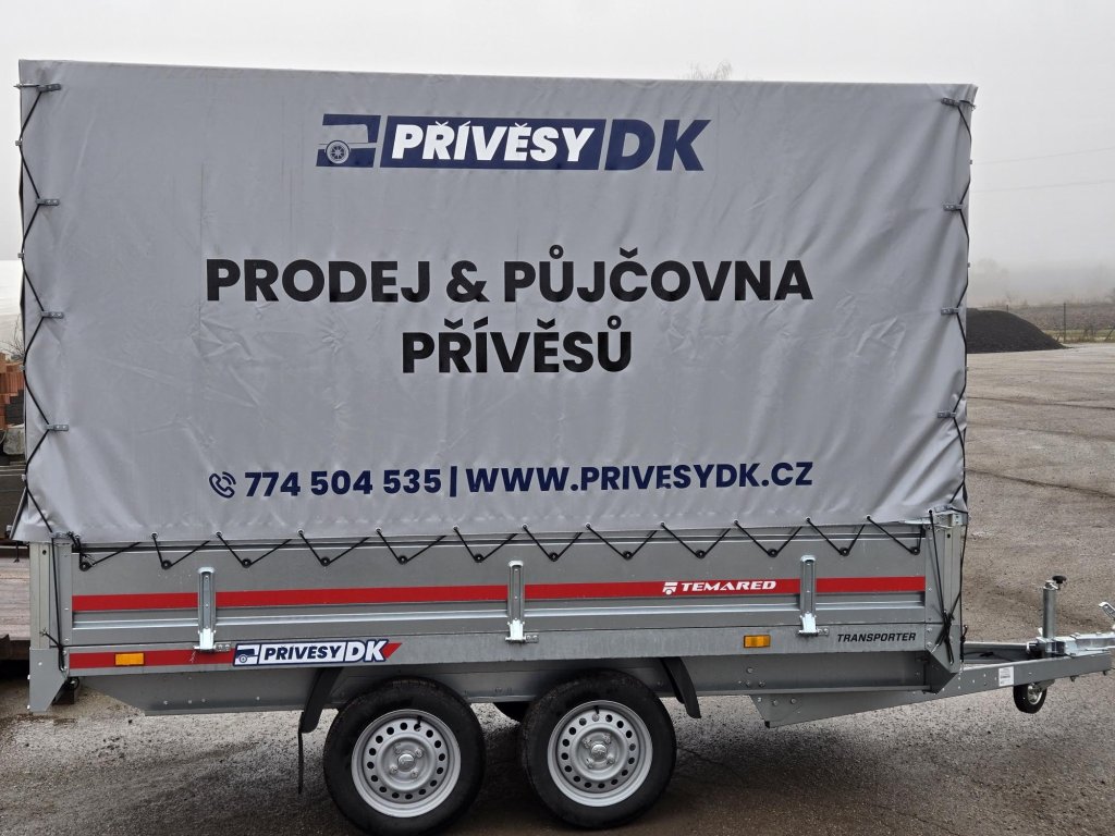 Valníkový dvouosý nebržděný přívěs do 750 kg o rozměrech 300 x 150 x 180 cm a plachtou. (Výška vozíku je od podlahy)