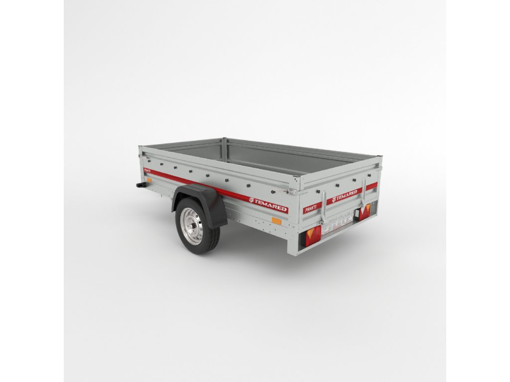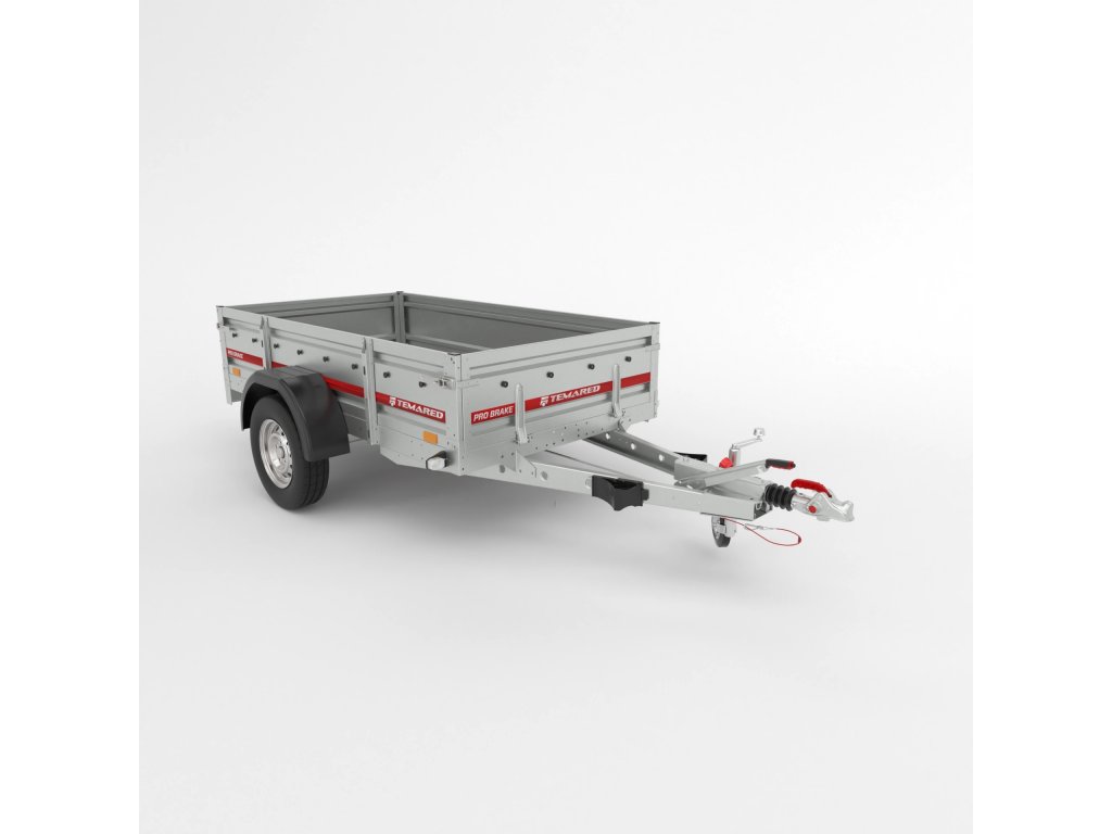 Přívěs pro přepravu těžkých nákladů s nájezdovou brzdou vybavený zesílenou pevnou ojí. Bočnice výšky 300 mm z pozinkované oceli s možností otevírání přední a zadní strany. zesílený nosný rám z ohýbaných profilů z pozinkovaného ocelového plechu sešroubovaných dohromady. Podlaha z voděodolné protiskluzové překližky vybavená úchyty pro uchycení pásů. Kola na vnější straně přepravní plochy se sníženým těžištěm, které jej odlišuje od ostatních brzděných přívěsů.