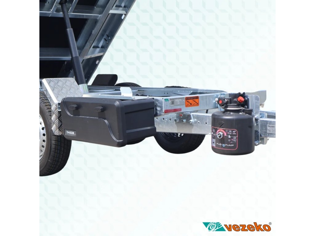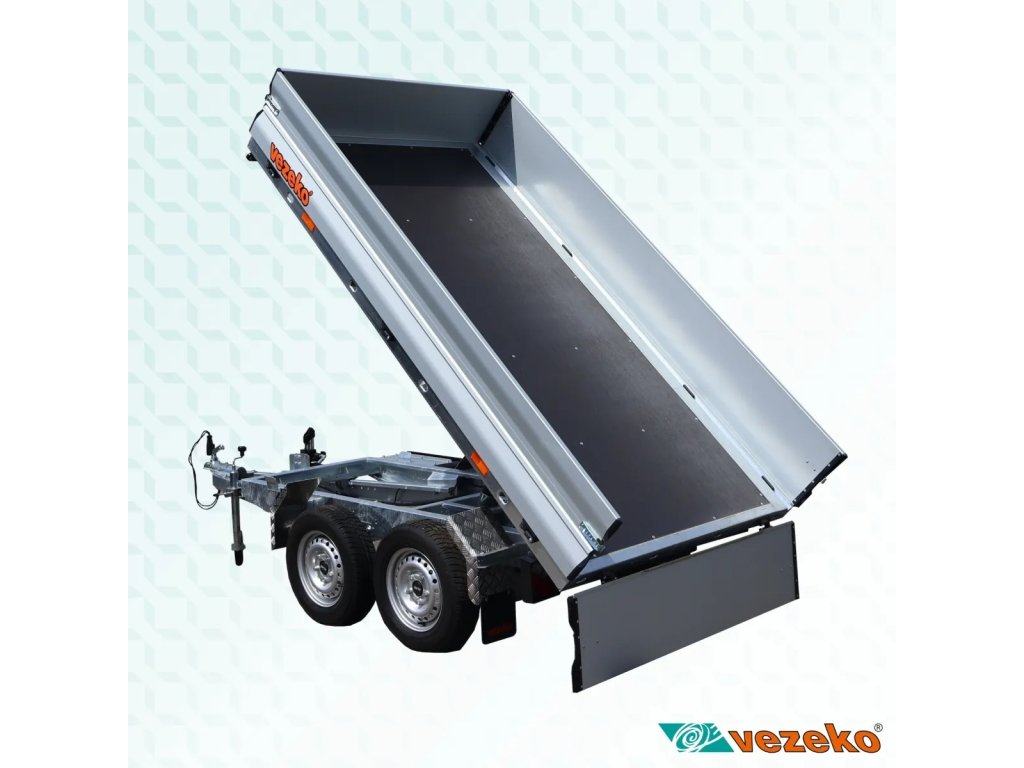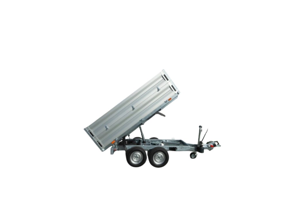 Dvounápravový přívěs s koly pod ložnou plochou, která je přístupná ze všech stran. Přívěs je sklopný dozadu pomocí manuální hydraulické pumpy s připojením na AKU vrtačku, na objednávku lze přívěs vybavit i hydraulickým elektroagregátem. Odnímatelné bočnice jsou zhotoveny z eloxovaných hliníkových profilů s nízkou hmotností. Podlaha je z vodovzdorné protiskluzové překližky.